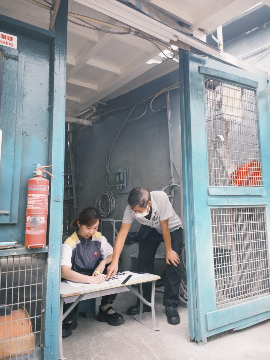 To make a signboard, we first had to print out the design and to use it as a stencil for painting. Kan sifu (master) patiently showed me how to cut the paper. I still remember the knife handle wrapped in tape, and how he told me to hold it like a pen — even though it wasn’t easy to control at all.